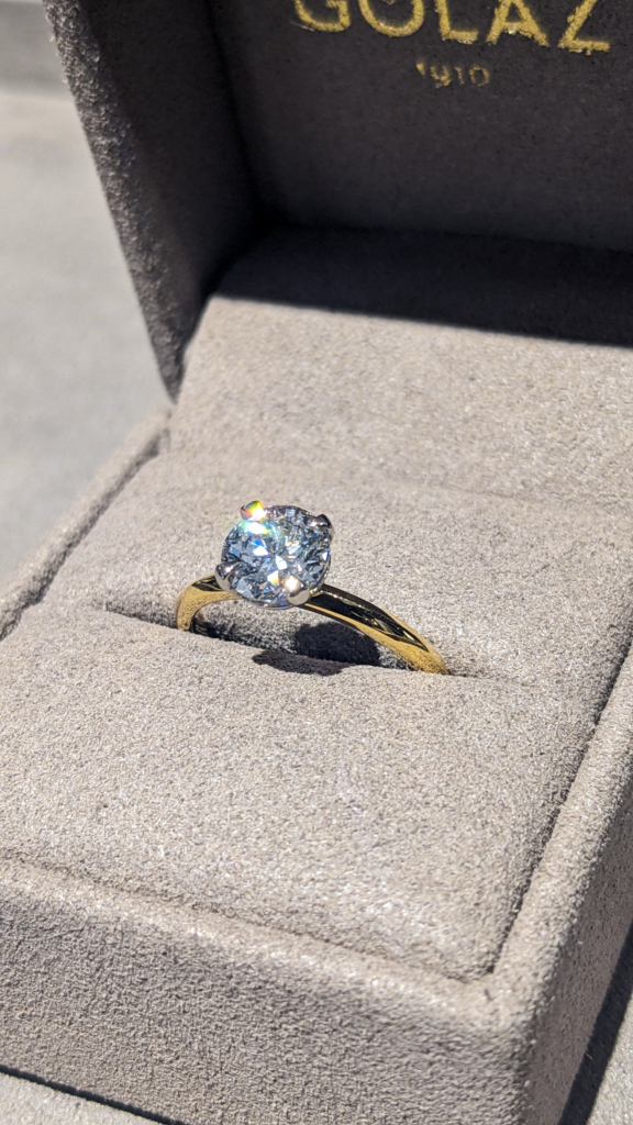 À la Bijouterie Golaz, nous préconisons les bagues de fiançailles en métal précieux pour sa durabilité et sa qualité. Nous ne travaillons qu’avec des métaux respectueux de l’éthique et de l’environnement comme l’or recyclé labellisé « or écologique ». Vous pourrez opter pour une bague en or jaune, rose ou blanc, et également en platine.