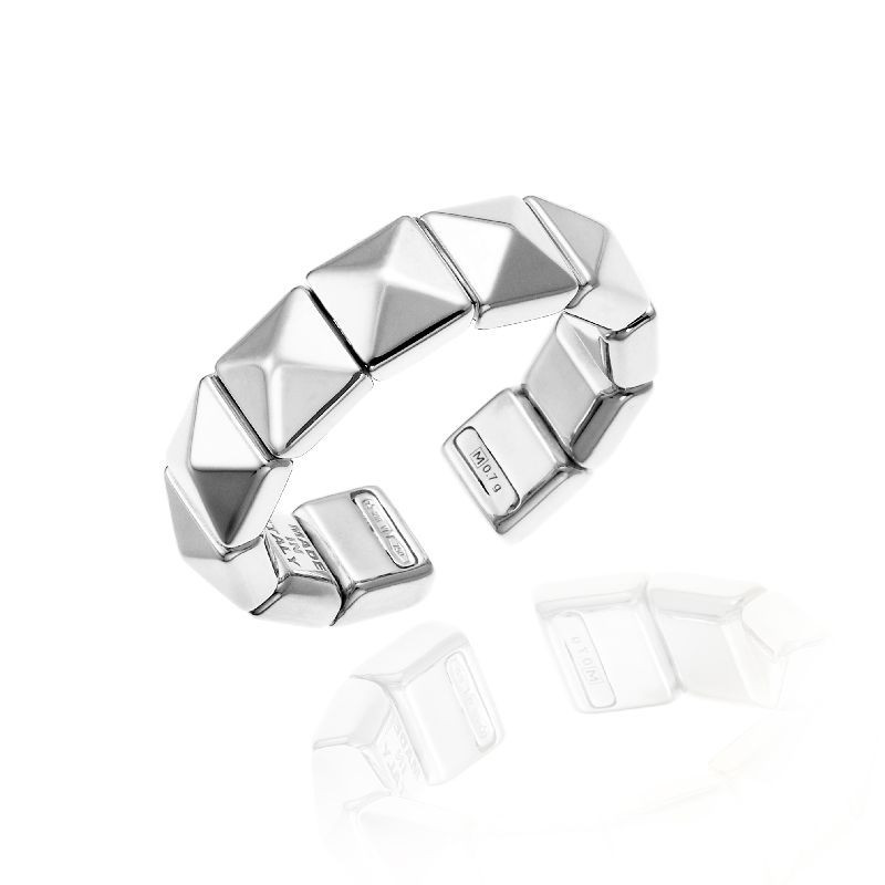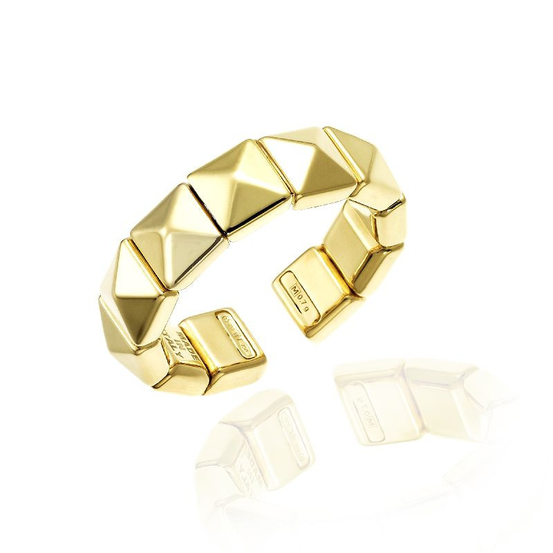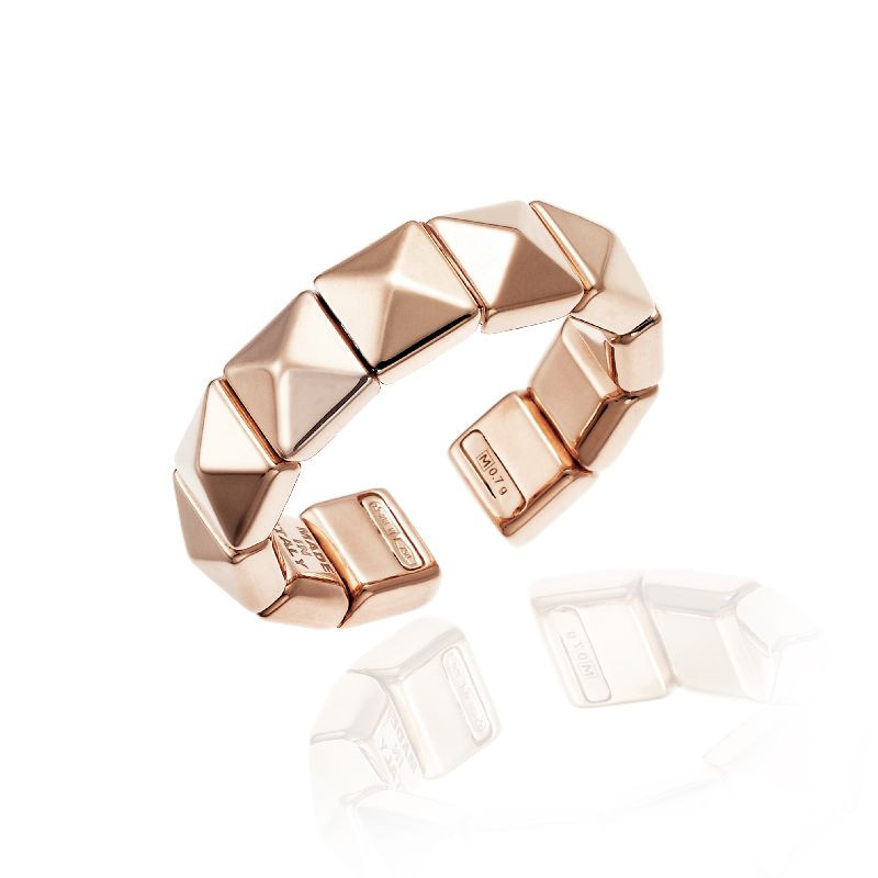 Les précieux éléments pyramidaux de l’anneau sont sublimés par des diamants sertis en micro pavé.