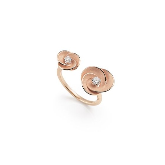 Inspirée des rosettes minérales formées par le sable et le vent, la collection Desert Rose dévoile des courbes organiques et sculpturales. Les volumes délicatement superposés, sublimés par les finitions sablées de l’or, évoquent la beauté brute et poétique du désert. Une création au charme minéral, à la fois puissante et raffinée.