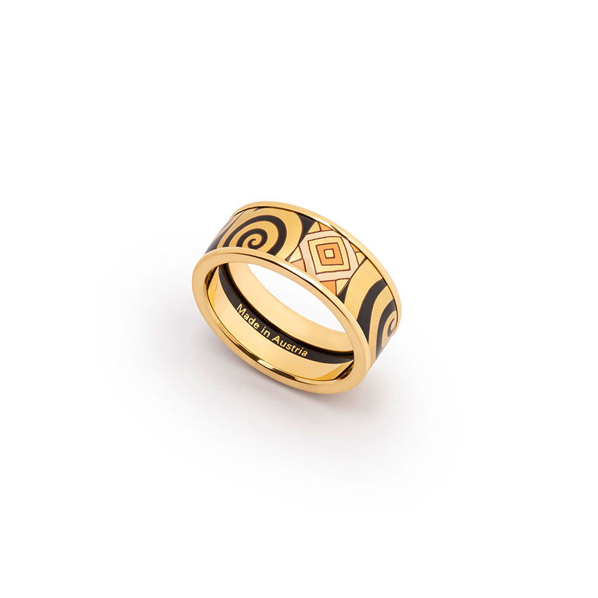 Un design clair et une surface en émail grand feu artistiquement décorée donnent naissance à un bijou véritablement décoratif. Malgré (ou à cause) de leur forme élémentaire, ces bagues attirent vraiment le regard.