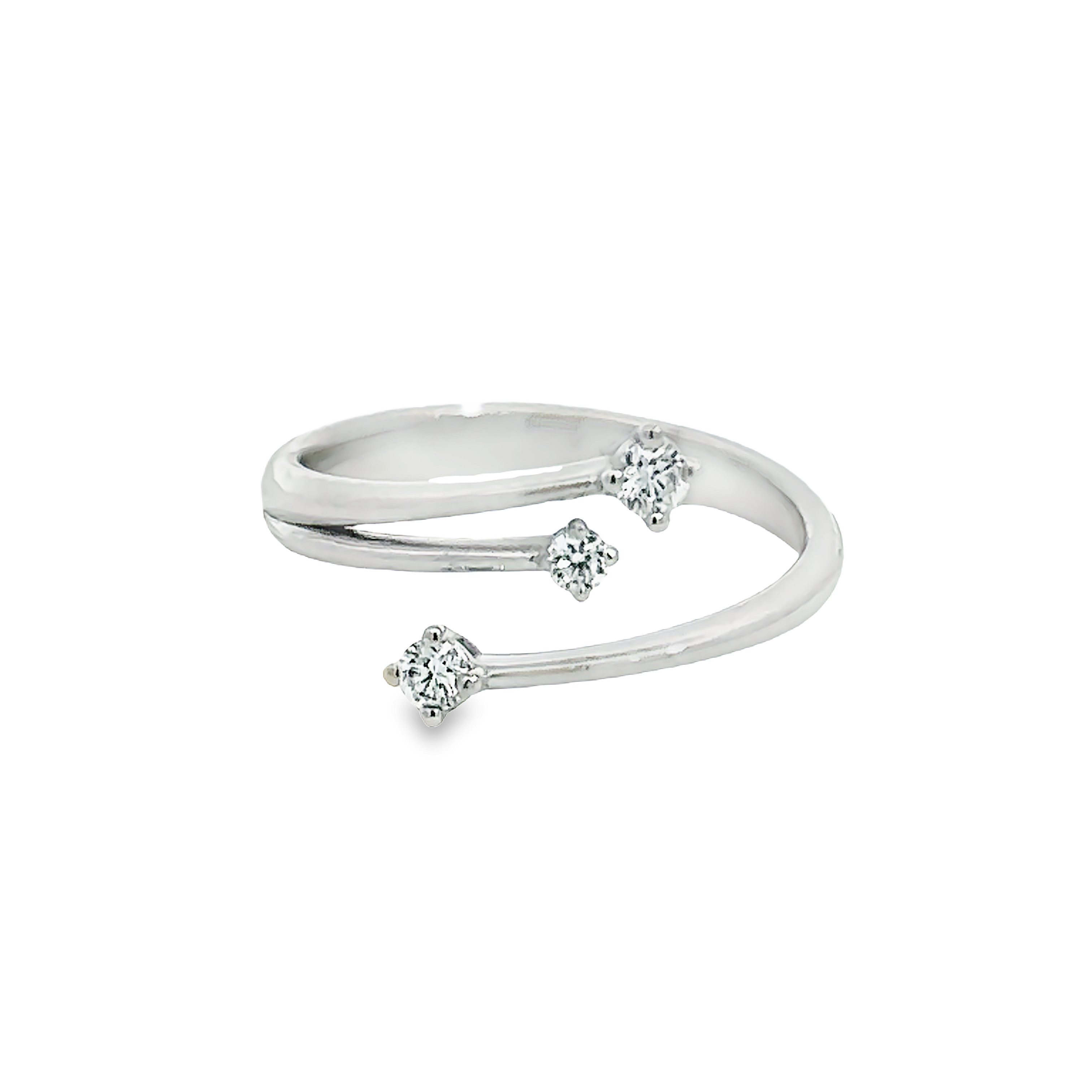 Création artisanale de l’atelier Golaz. Bague croisée en or blanc sertie de 3 diamants cultivés en laboratoire