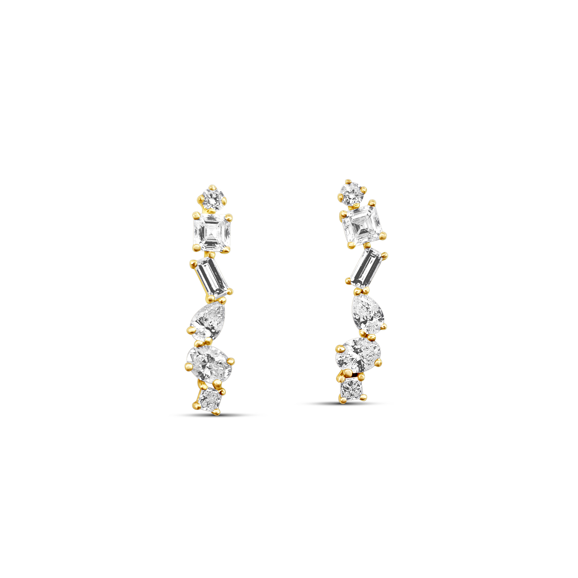 Tel un kaléidoscope, cette collection de nos ateliers fascine et hypnotise. Les multiples tailles de diamants jouent des formes et de la lumière pour offrir un spectacle scintillant. Elle se décline en toutes les couleurs d’or et peut être réalisée avec des pierres de couleurs sur demande.