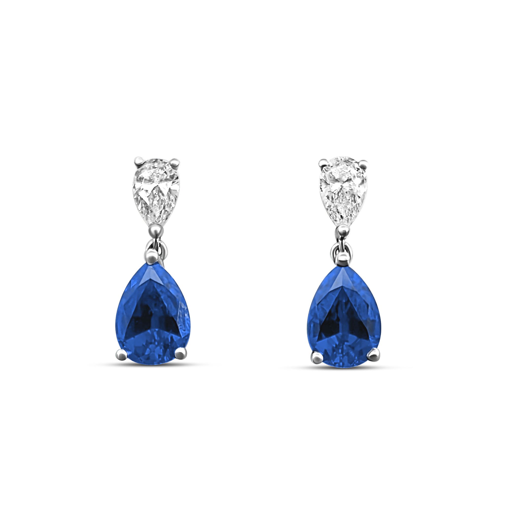 Création artisanale de l’atelier Golaz, les boucles d’oreilles Tears of Joy sont sublimées par deux saphirs taille poire et deux diamants taille poire, suspendus comme deux larmes précieuses célébrant l’émotion pure et la joie intense.