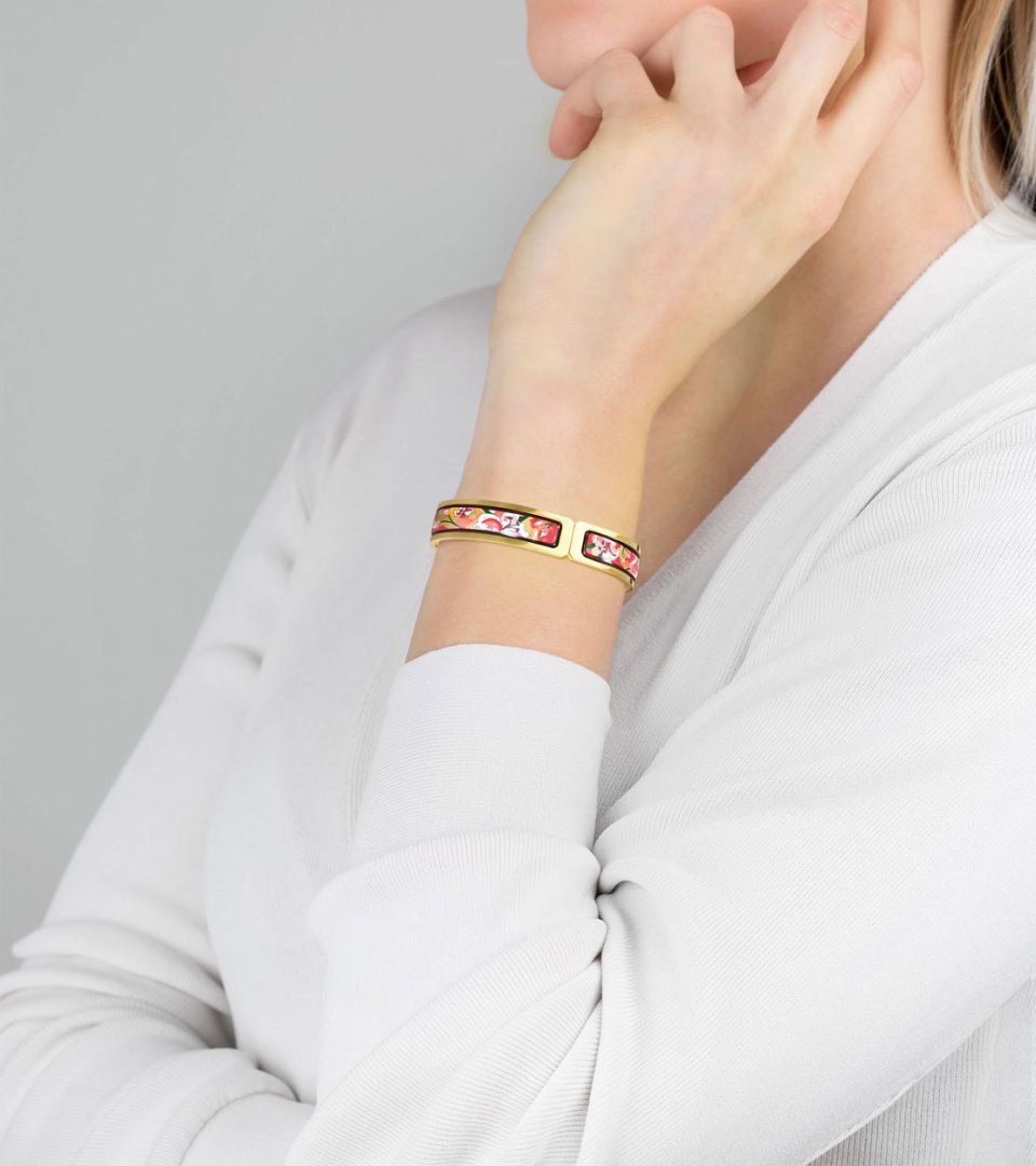 Ballerina est le plus délicat des bracelets à CLIP FREYWILLE. Elégant et polyvalent, il se compose de deux plaques émaillées à la main placées sur les deux côtés du fermoir. Le motif en émail grand feu, est éternel et étincelant. Le bracelet s »enroule joliment autour de votre poignet, confortable, il se porte de jour comme le soir.