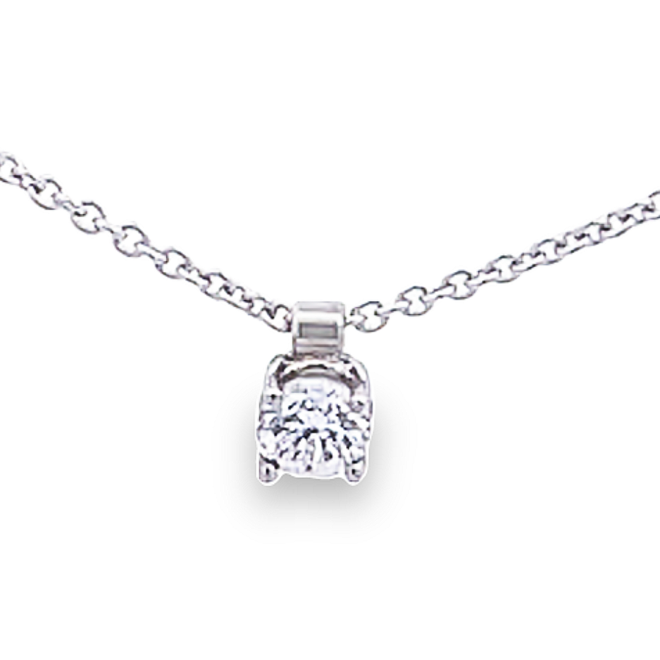Création artisanale de l’atelier Golaz. diamant sérti 4 griffes en or blanc et onté sur chaine forçat.
