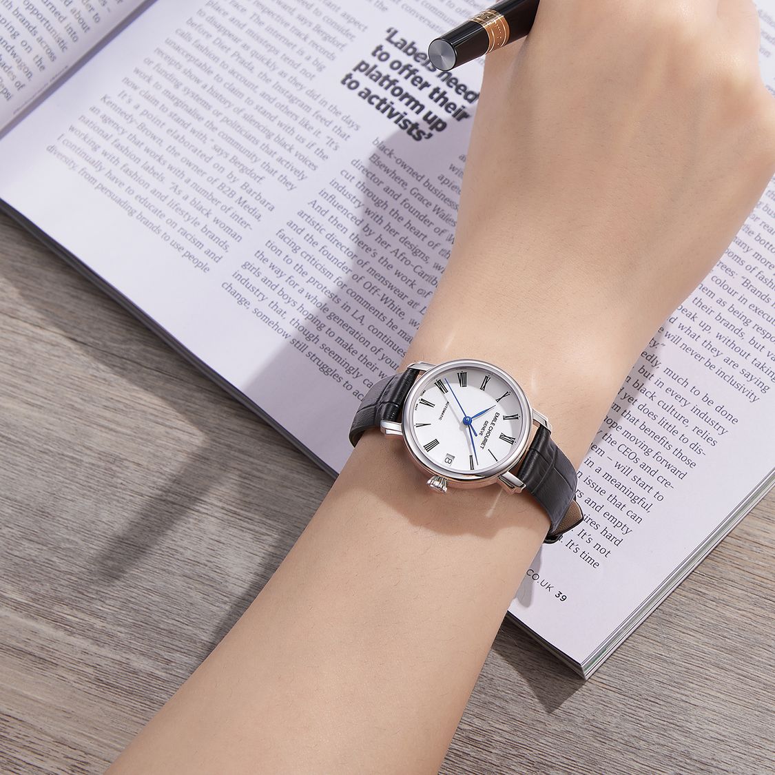 Disponible avec un bracelet en cuir noir ou en acier inoxydable, la Lac Léman Lady se décline également en version bicolore avec une lunette en or rose 18 carats, pour celles qui recherchent une touche de chaleur supplémentaire. Cette montre est le choix idéal pour les femmes appréciant un garde-temps classique, élégant et discret, fidèle à la tradition horlogère suisse.