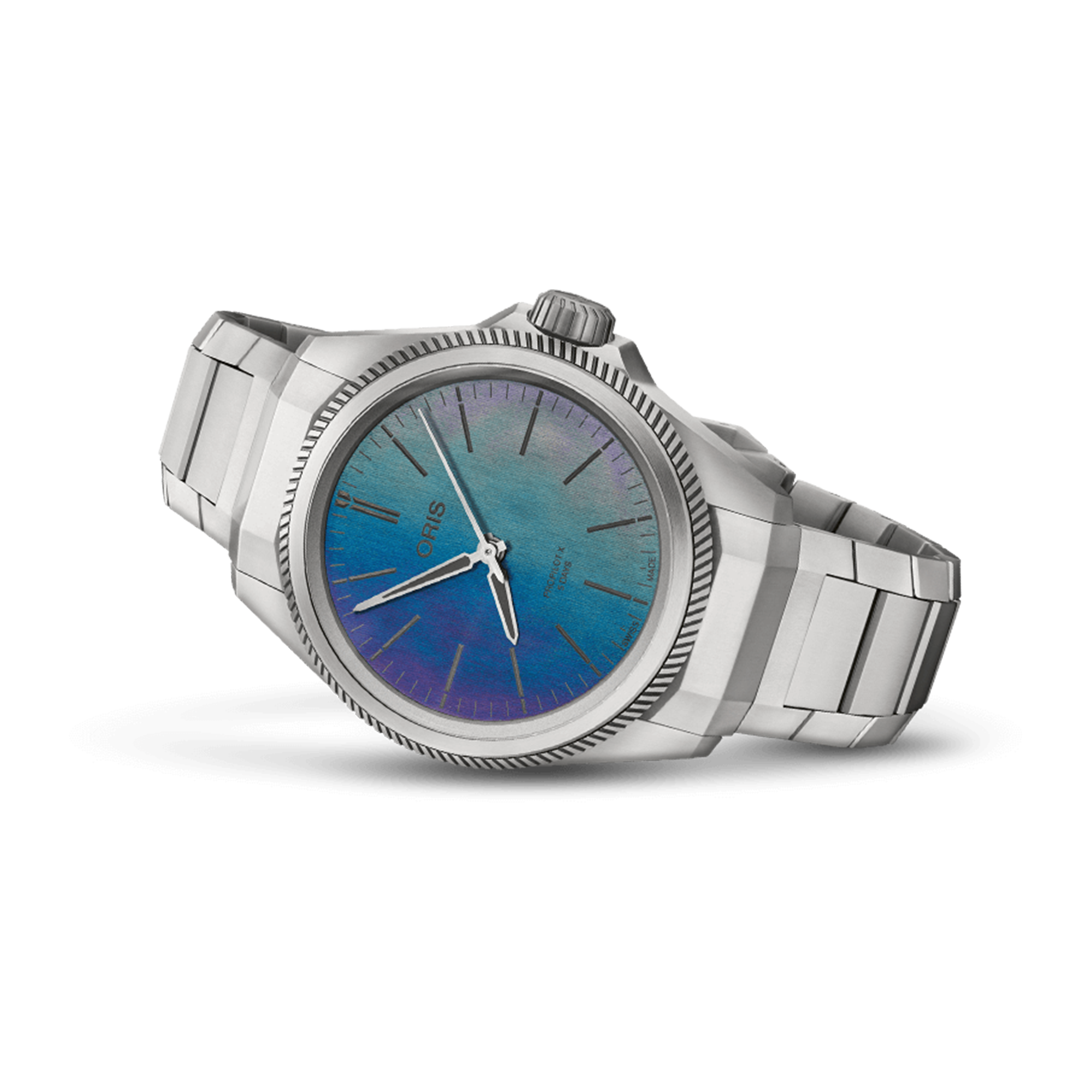 Le cadran de la montre utilise une technologie de pointe inspirée du biomimétisme, reflétant les merveilles de la nature comme les ailes irisées d’un coléoptère. Développé avec l’ETH Zürich, c’est la première fois que cette technique est utilisée dans une montre, pour notre plus grand bonheur.