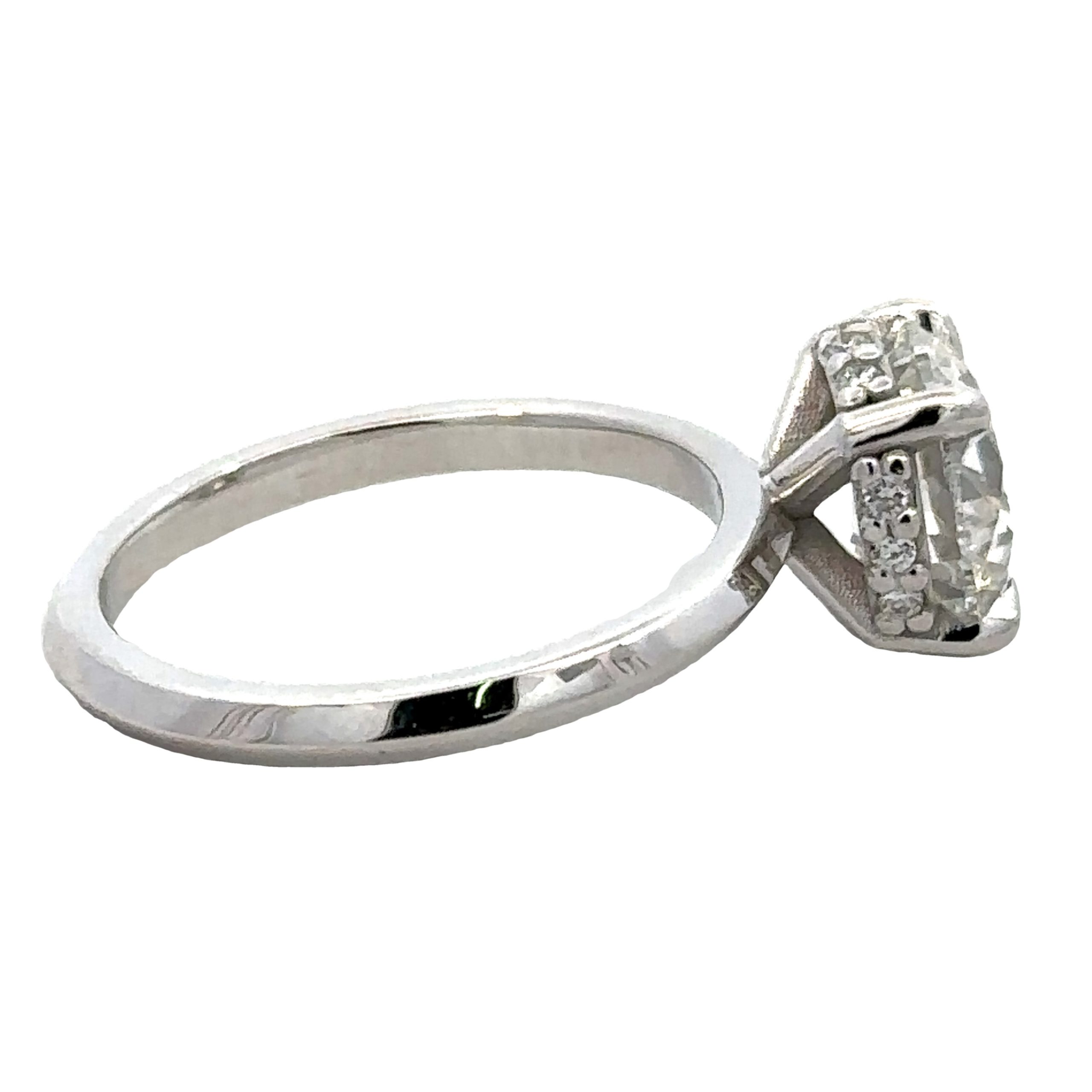 Création artisanale de l’atelier Golaz. Solitaire en or blanc serti d’un magnifique diamant cultivé en laboratoire de 3.07ct et accompagné de 12 diamants sur le châton.